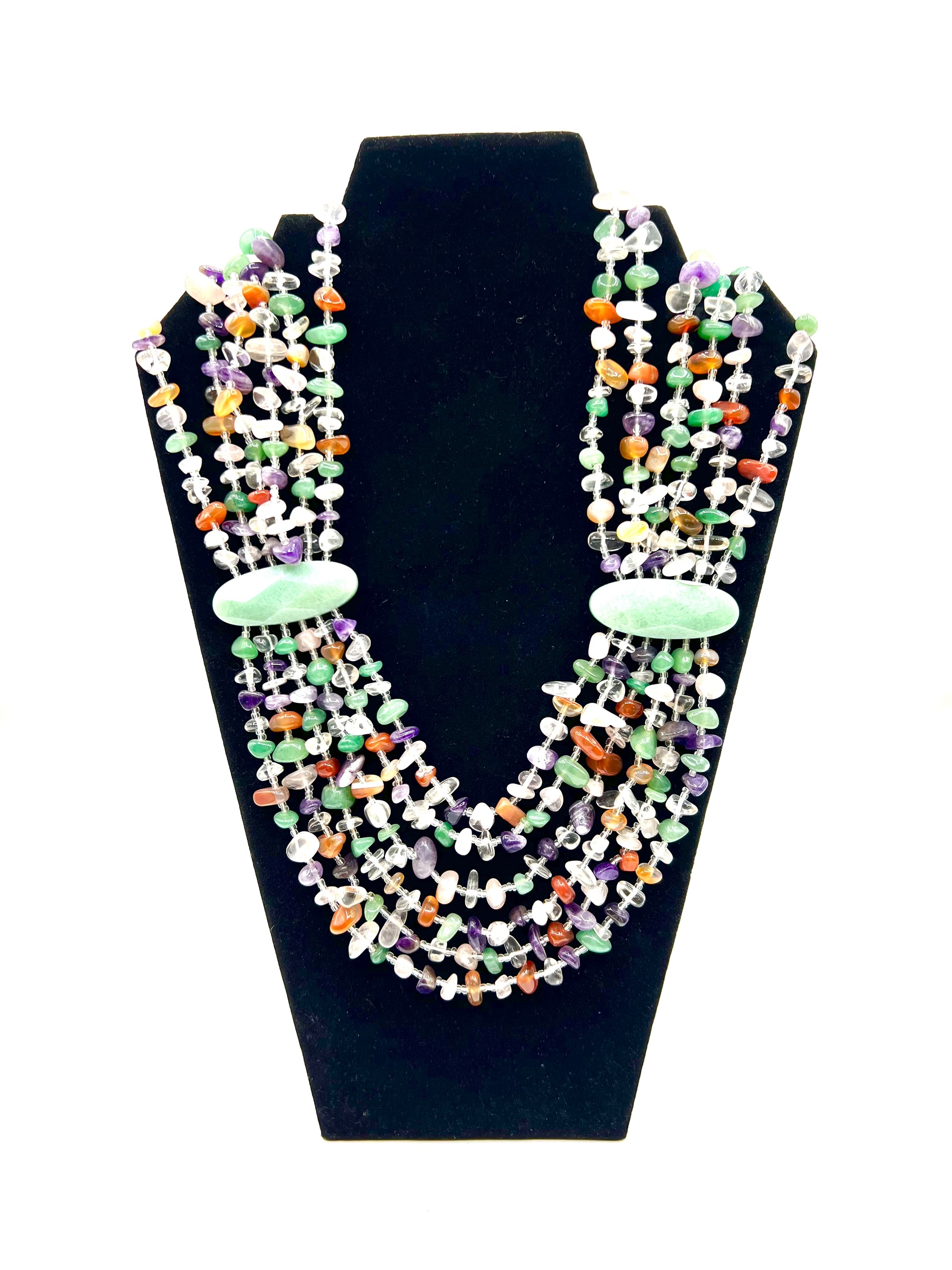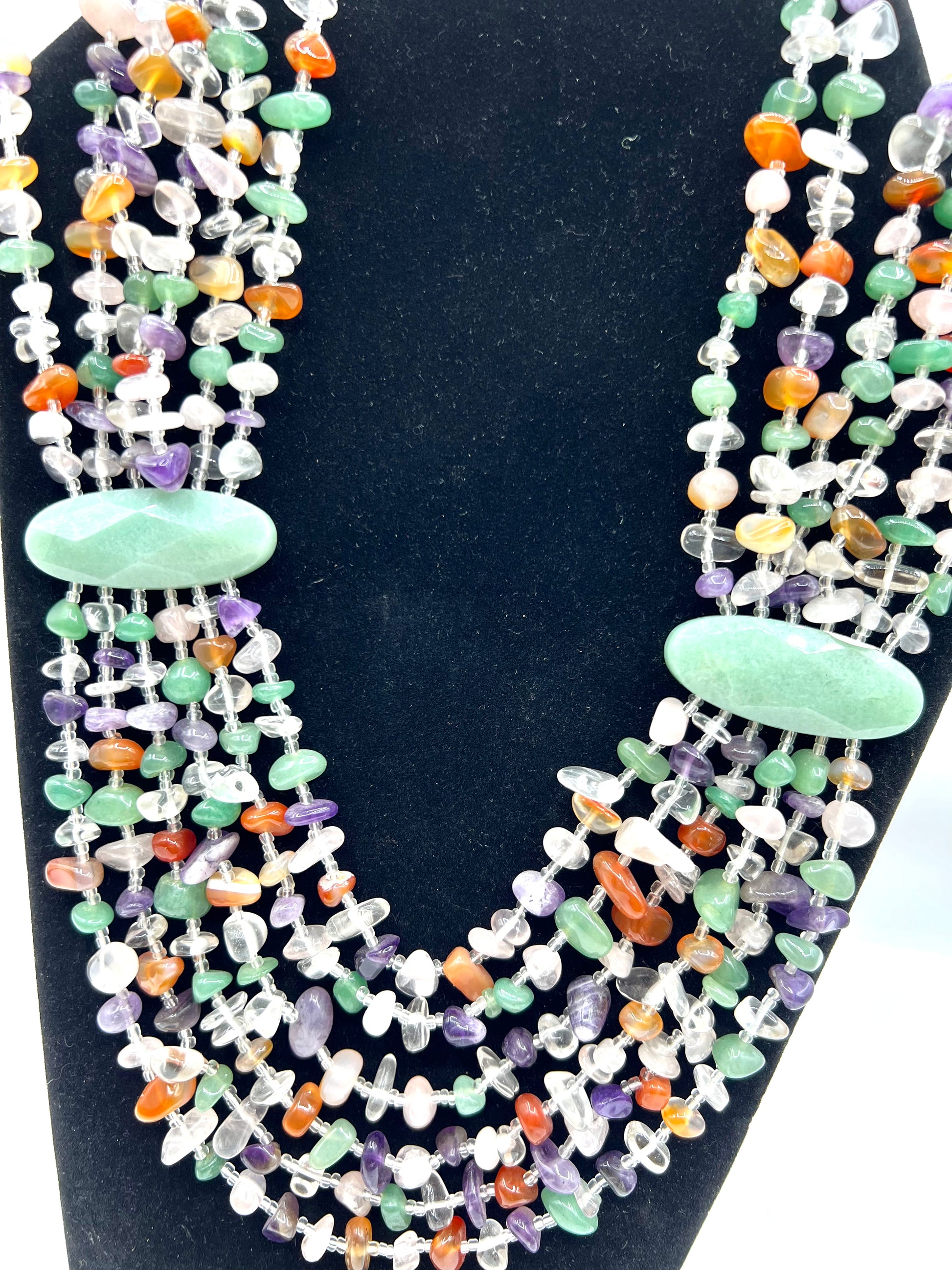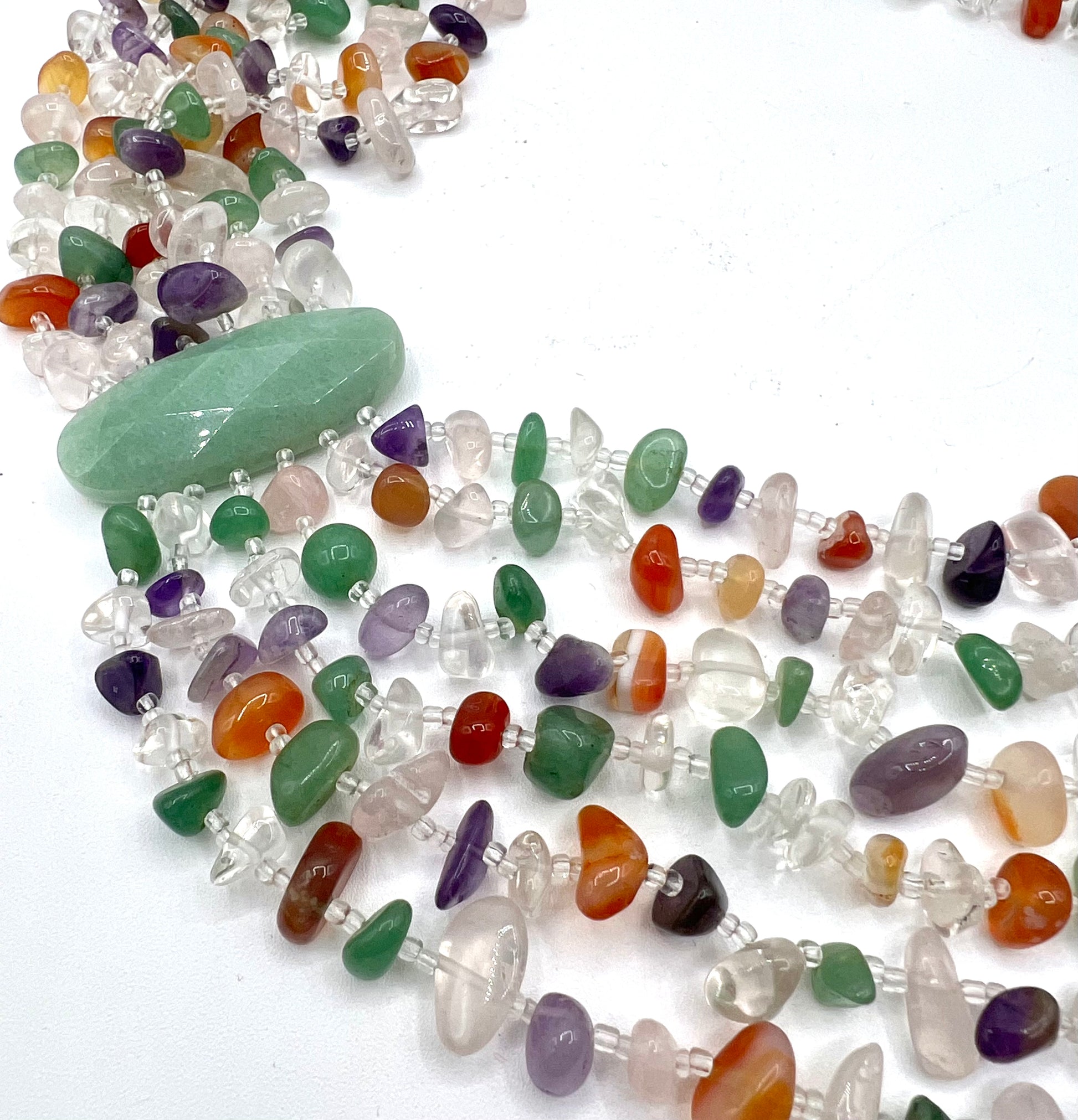 Large Crystal Necklace Multi Color Healing Crystals Bib Statement Hand Made