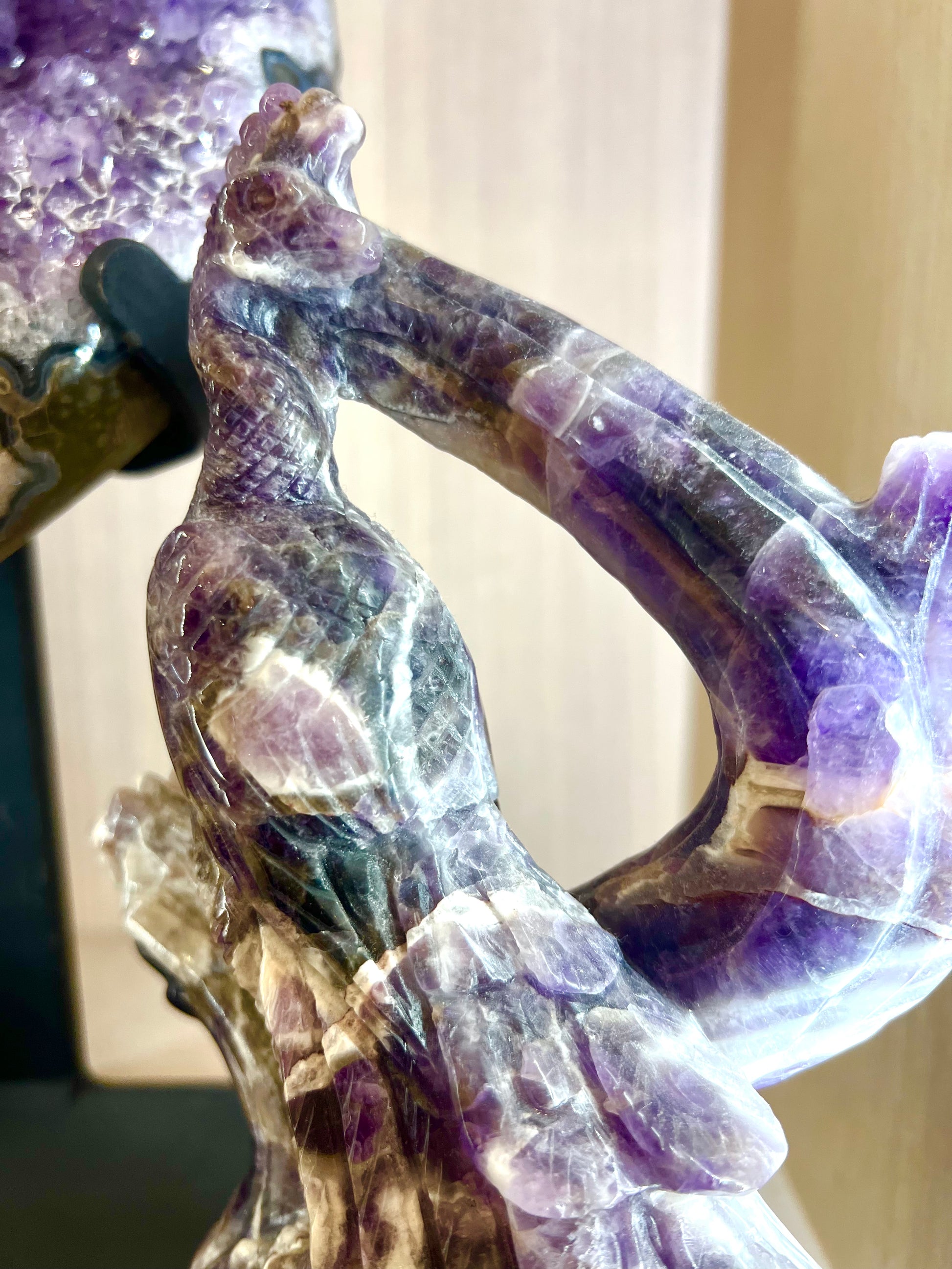 Amethyst Peacock Carving – Crystal Bird Sculpture Table top prosperity gift Home decor Healing Crystals