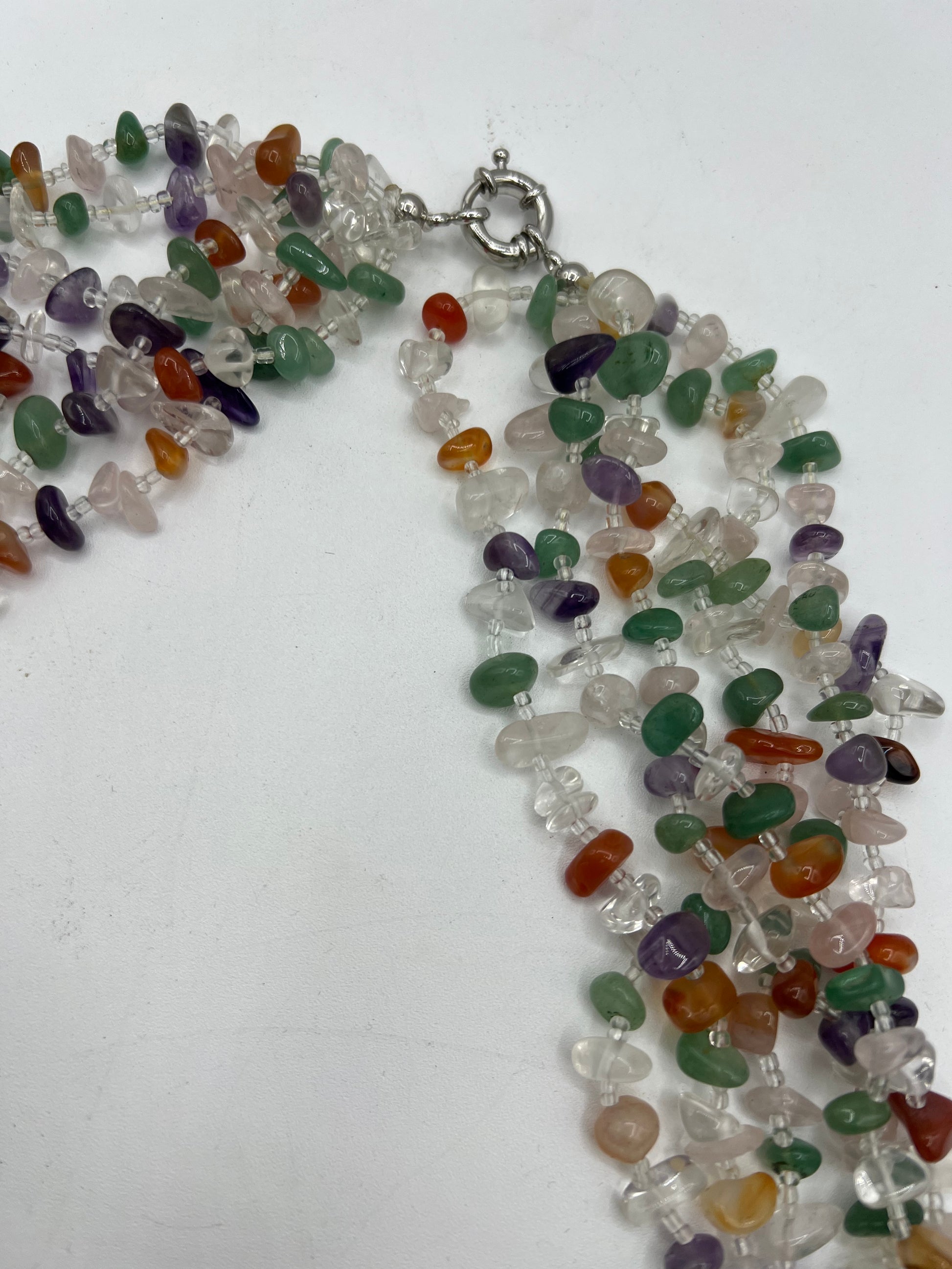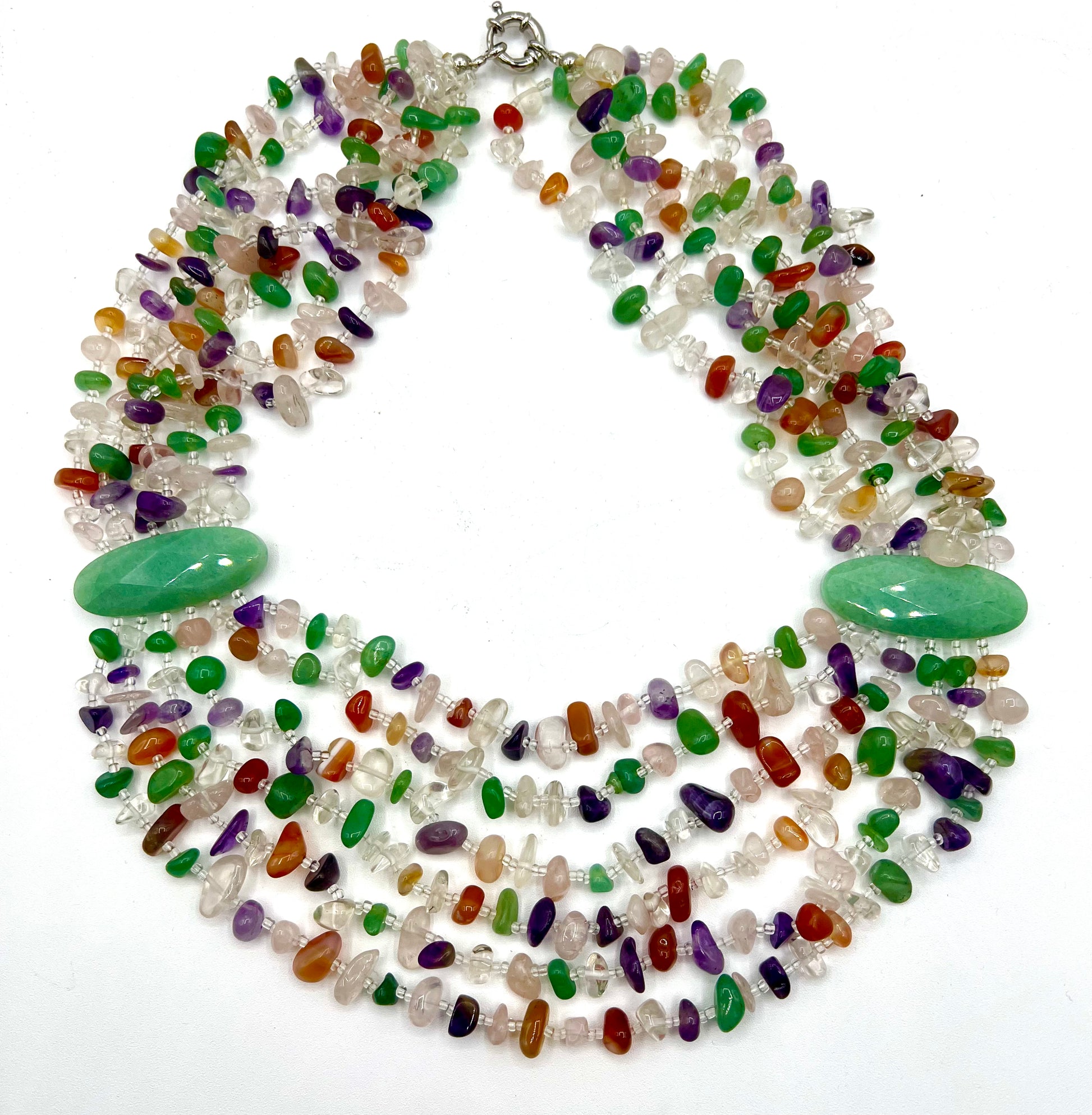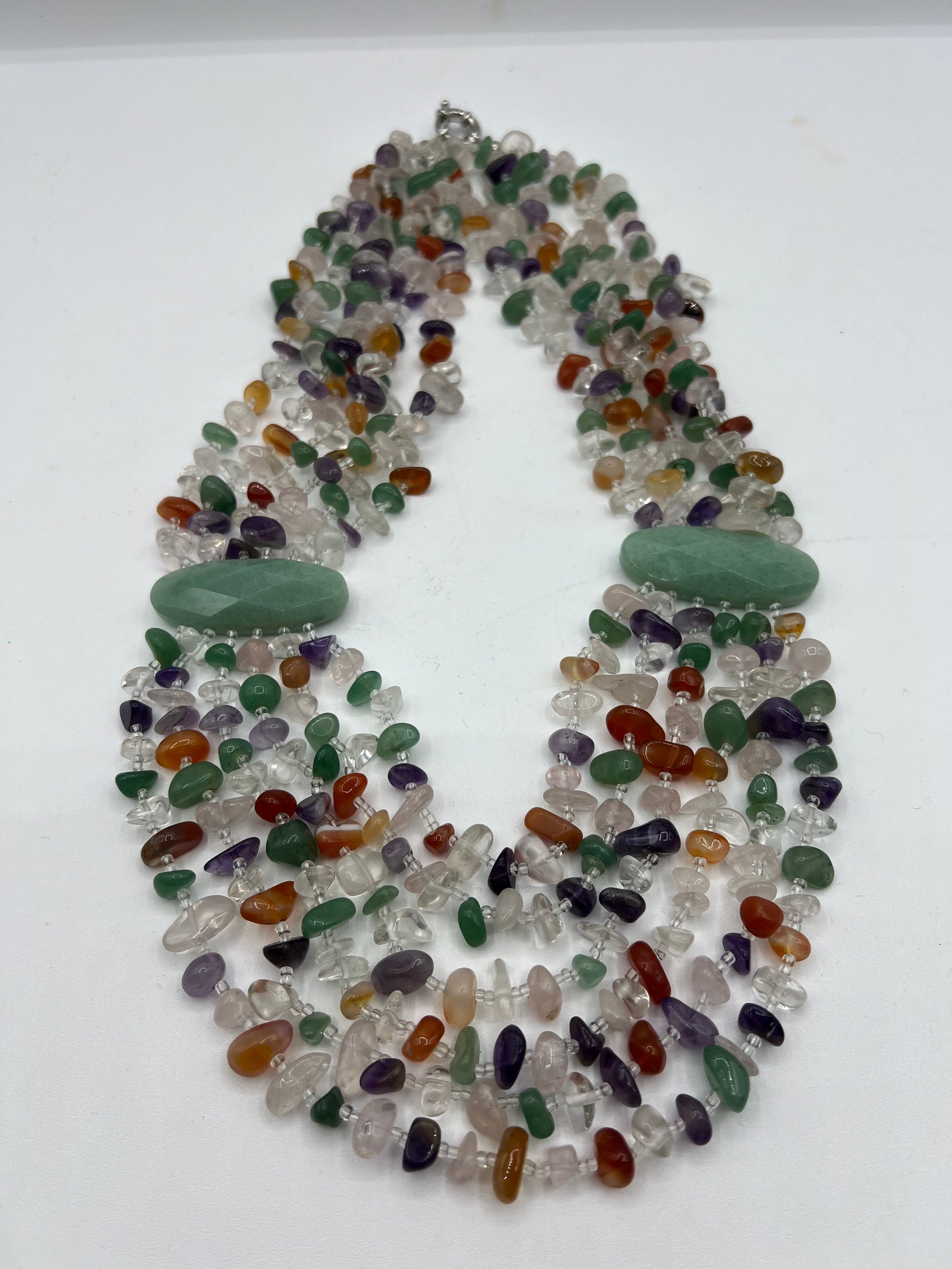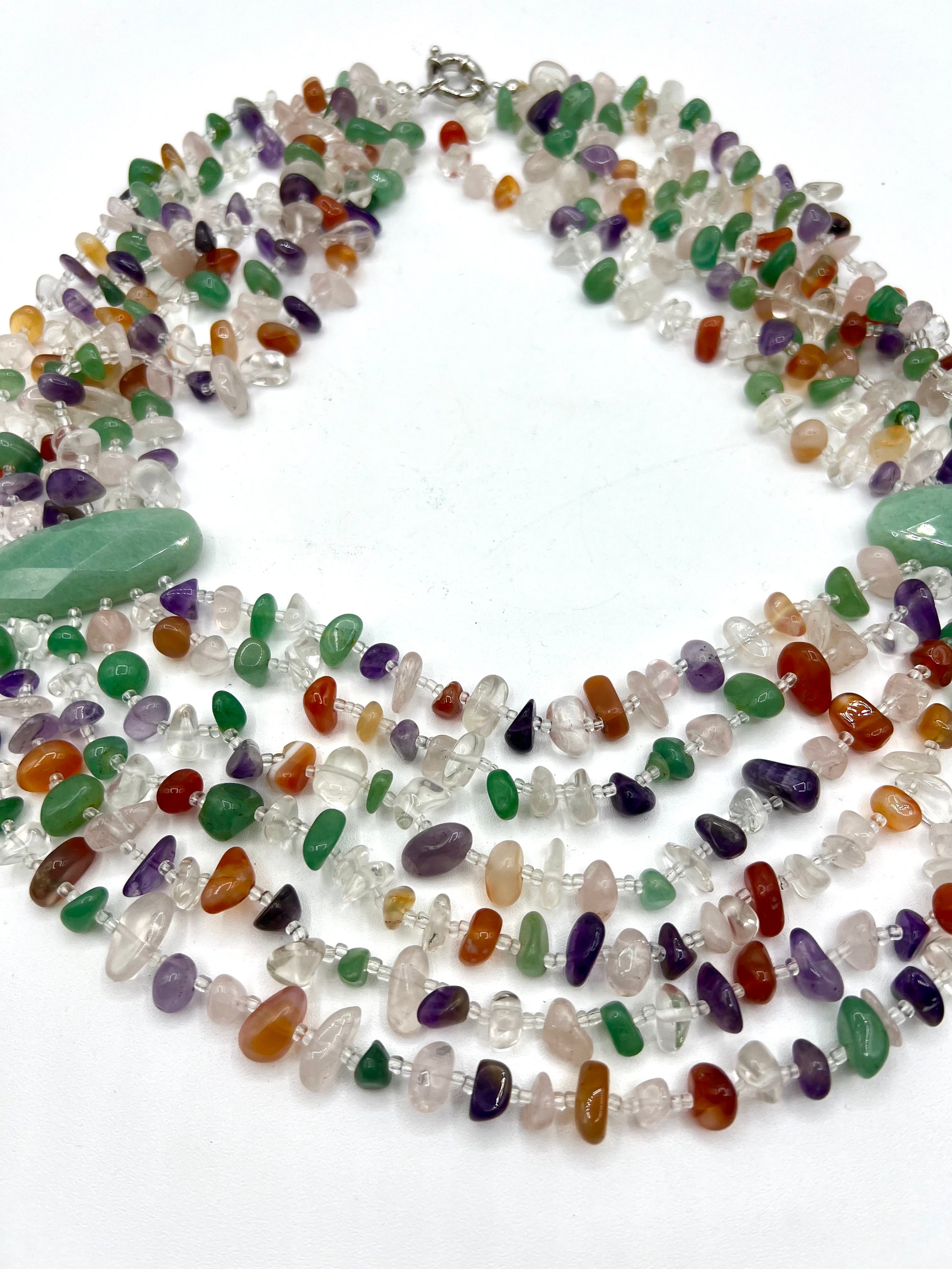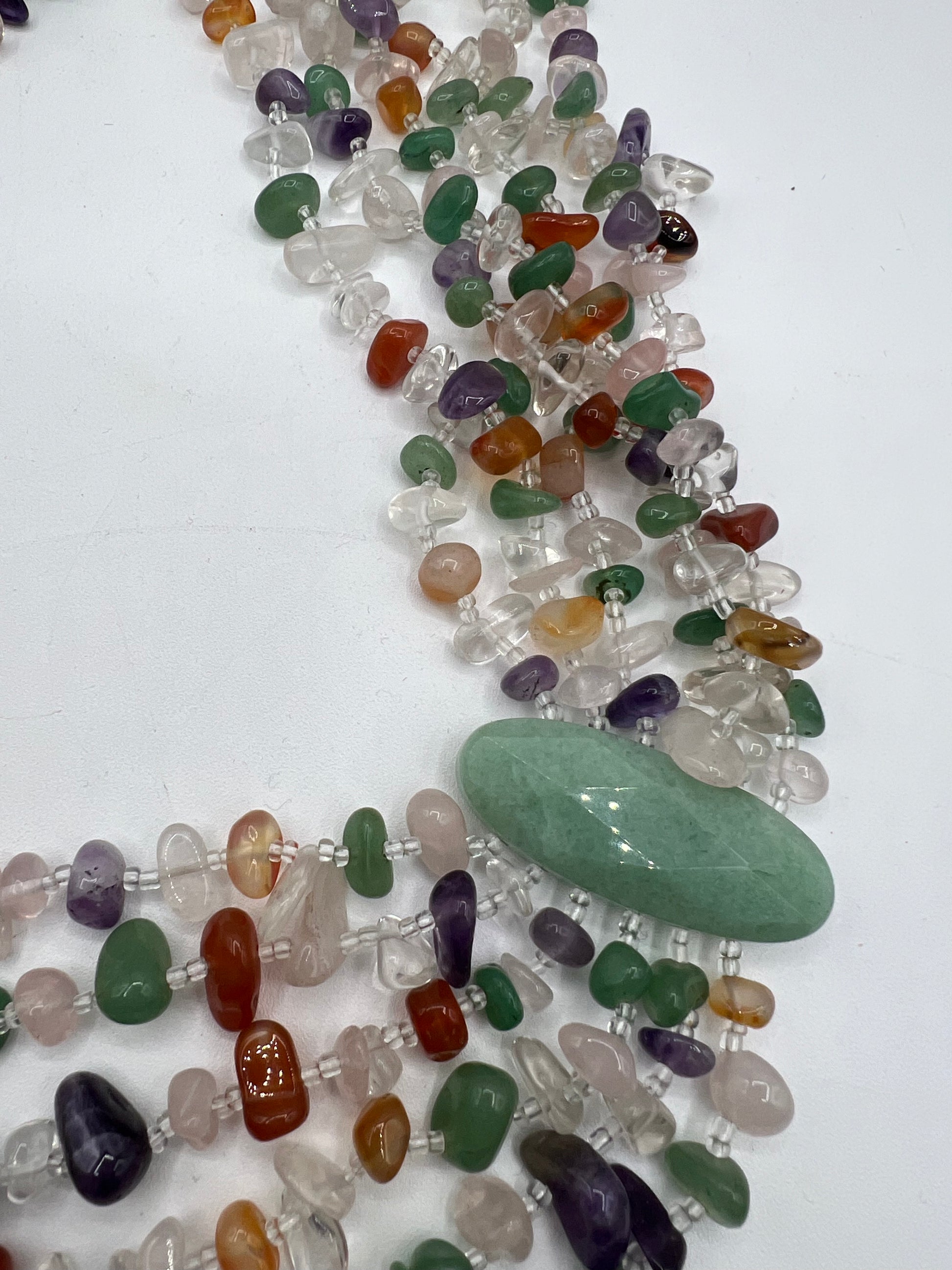 Green Aventurine, Amethyst, Carnelian, Obsidian, Clear quartz, all in one place. Hand made large beautiful one of a kind necklace.