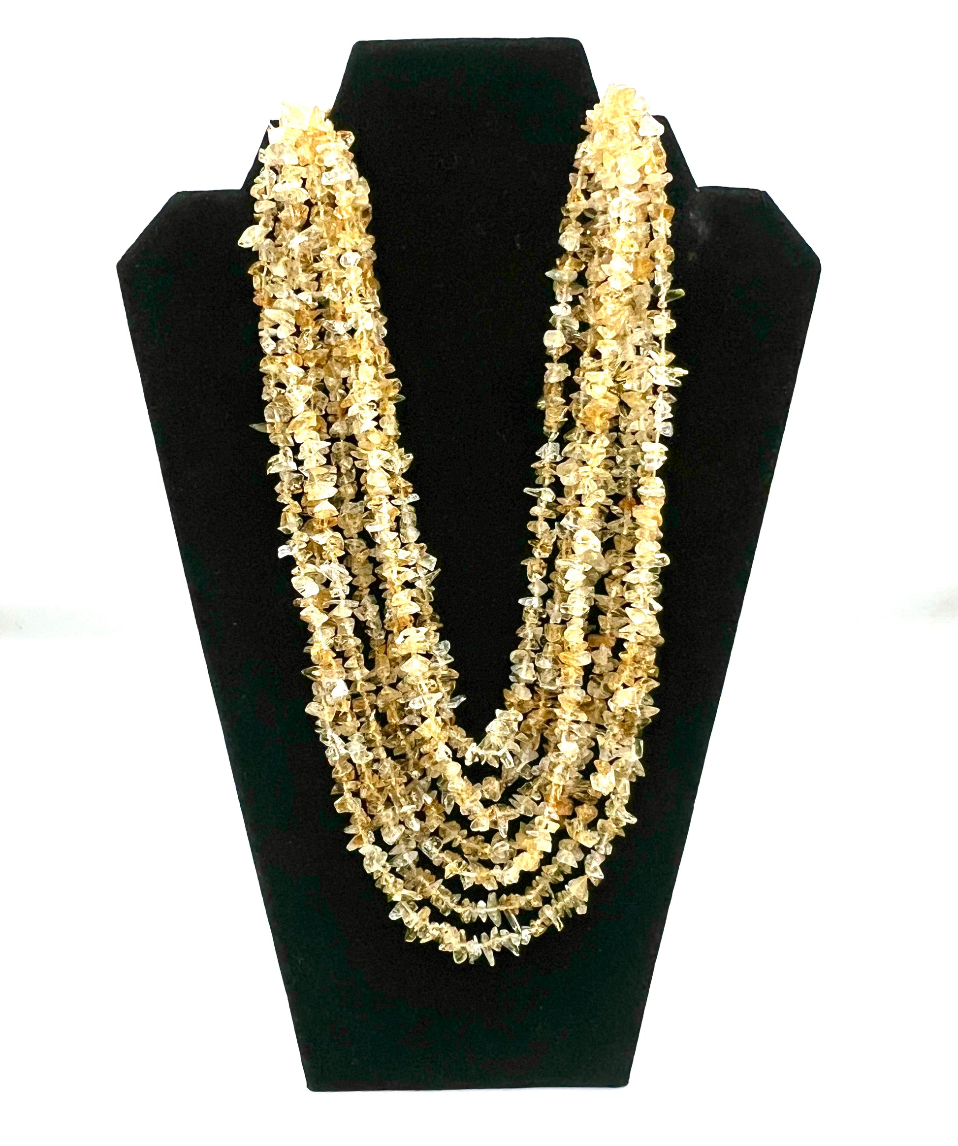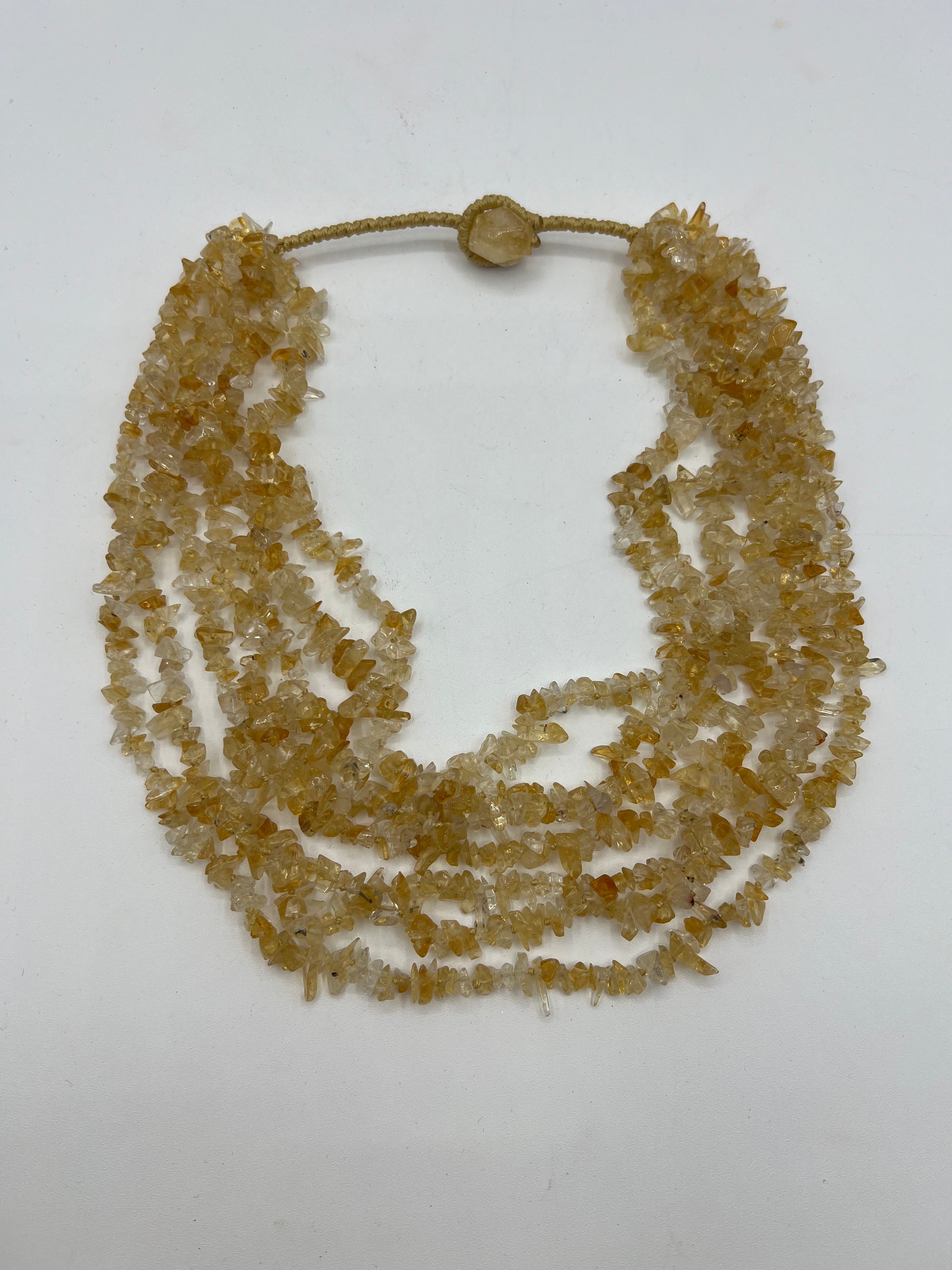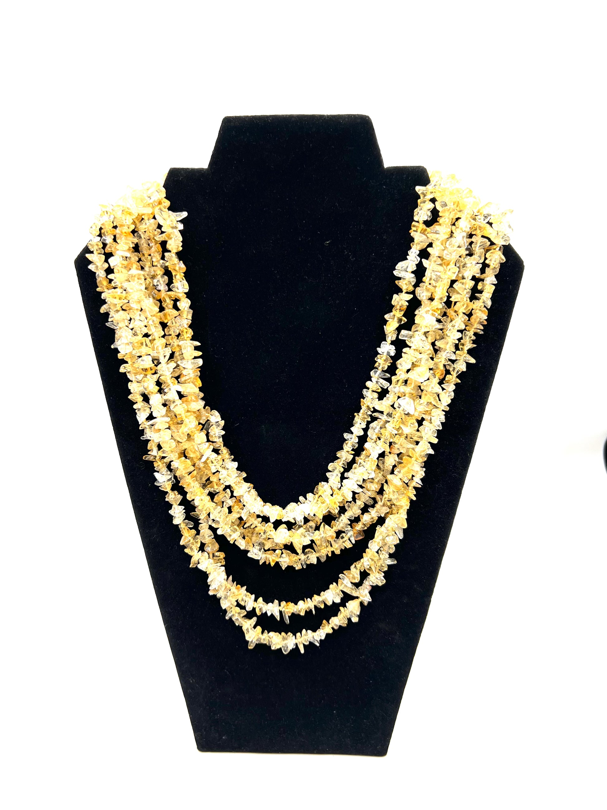 Beautifully made all citrine crystals. Layered necklace. length 14", drop 8". 7 strends.