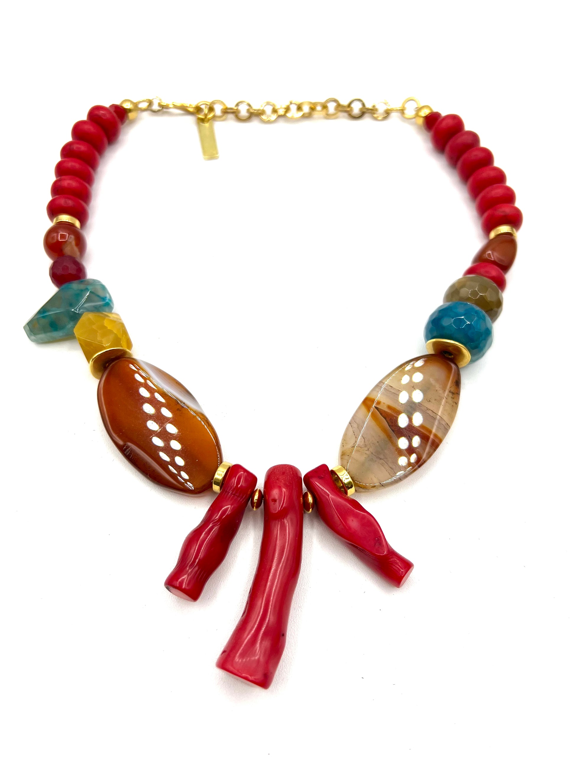 Red Coral Agate Crystal Statement Necklace Bib Healing Crystals Bloem