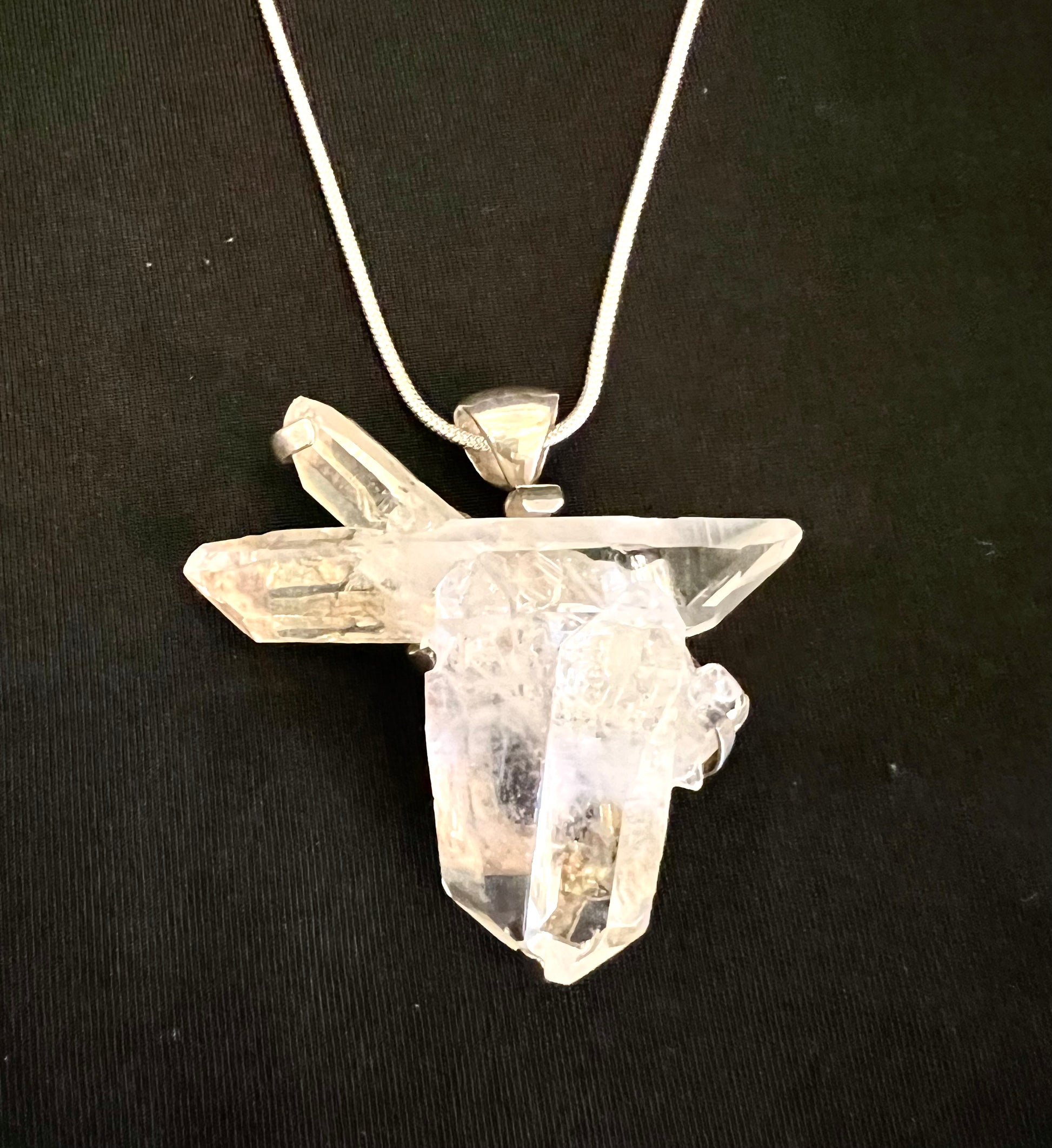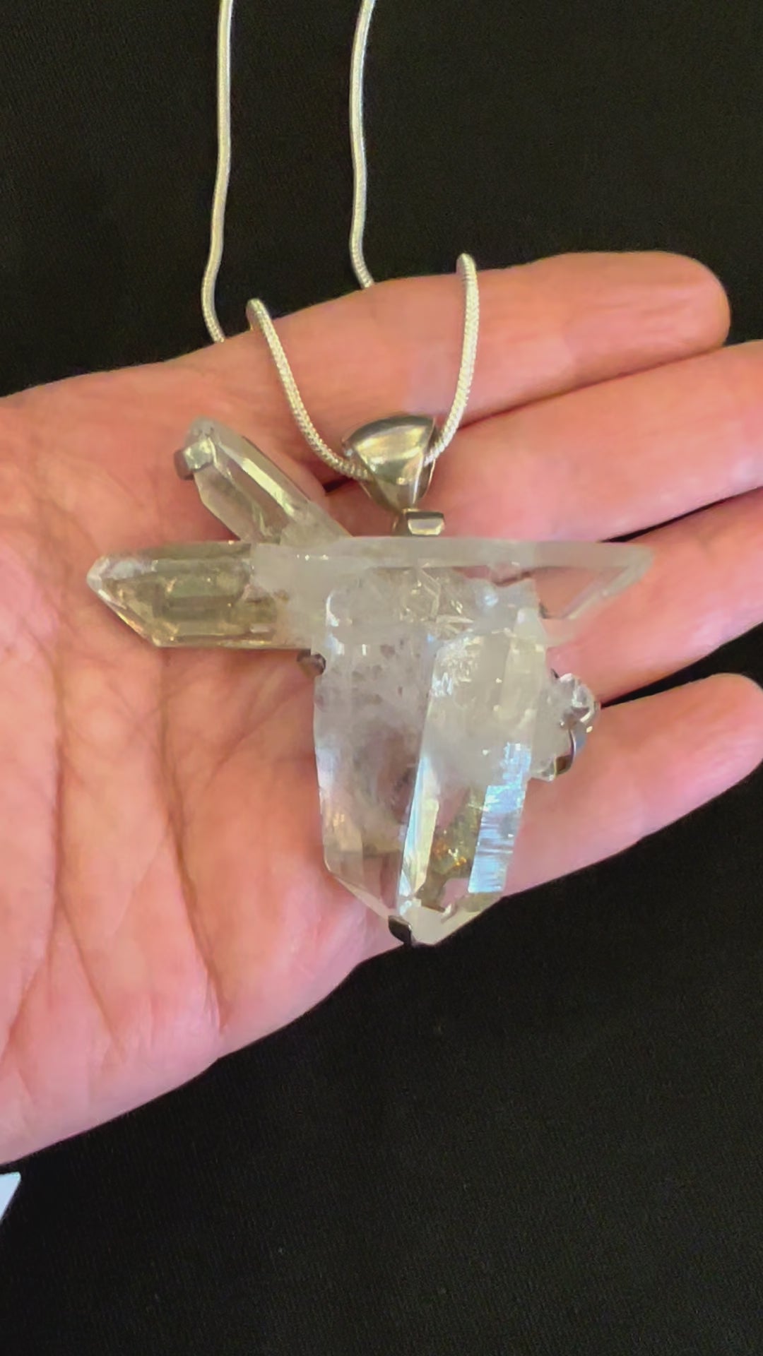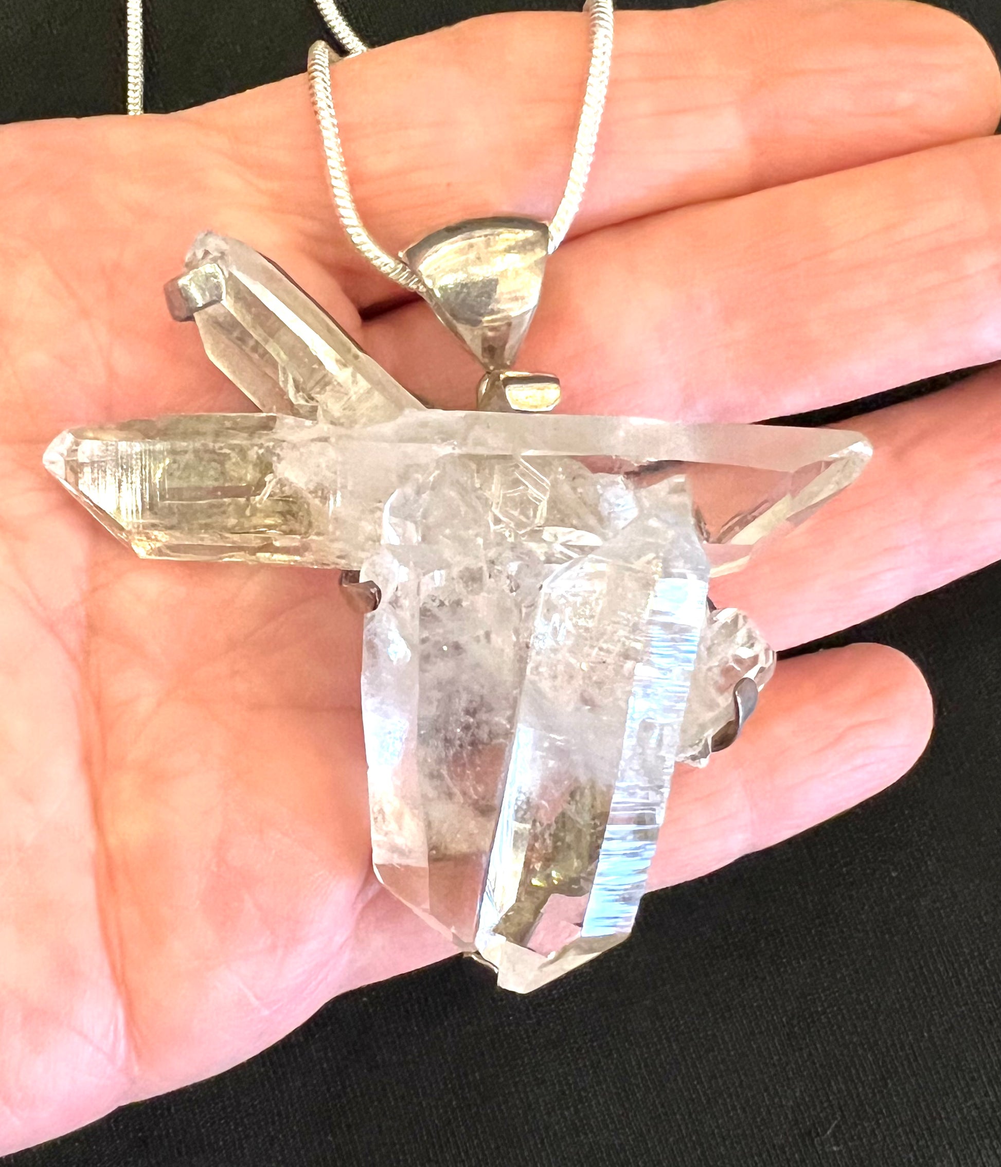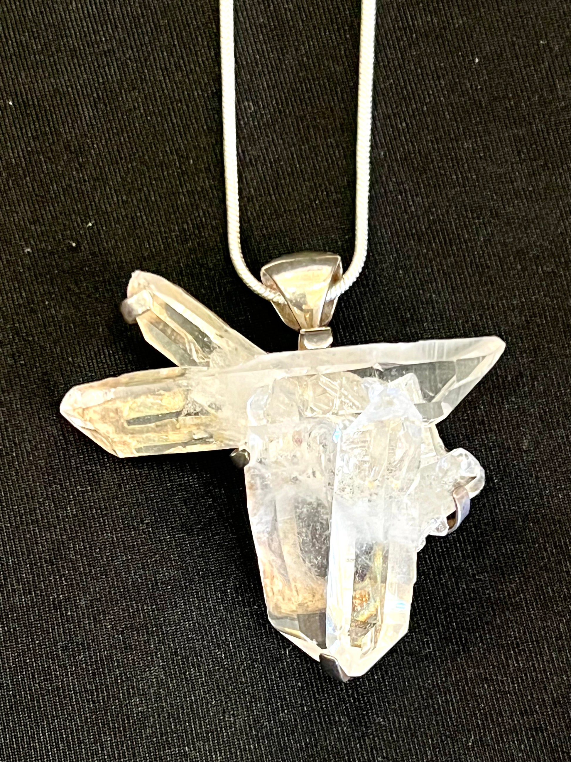 Large Clear Quartz Pendant Cluster Raw crystal Healing necklace Silver