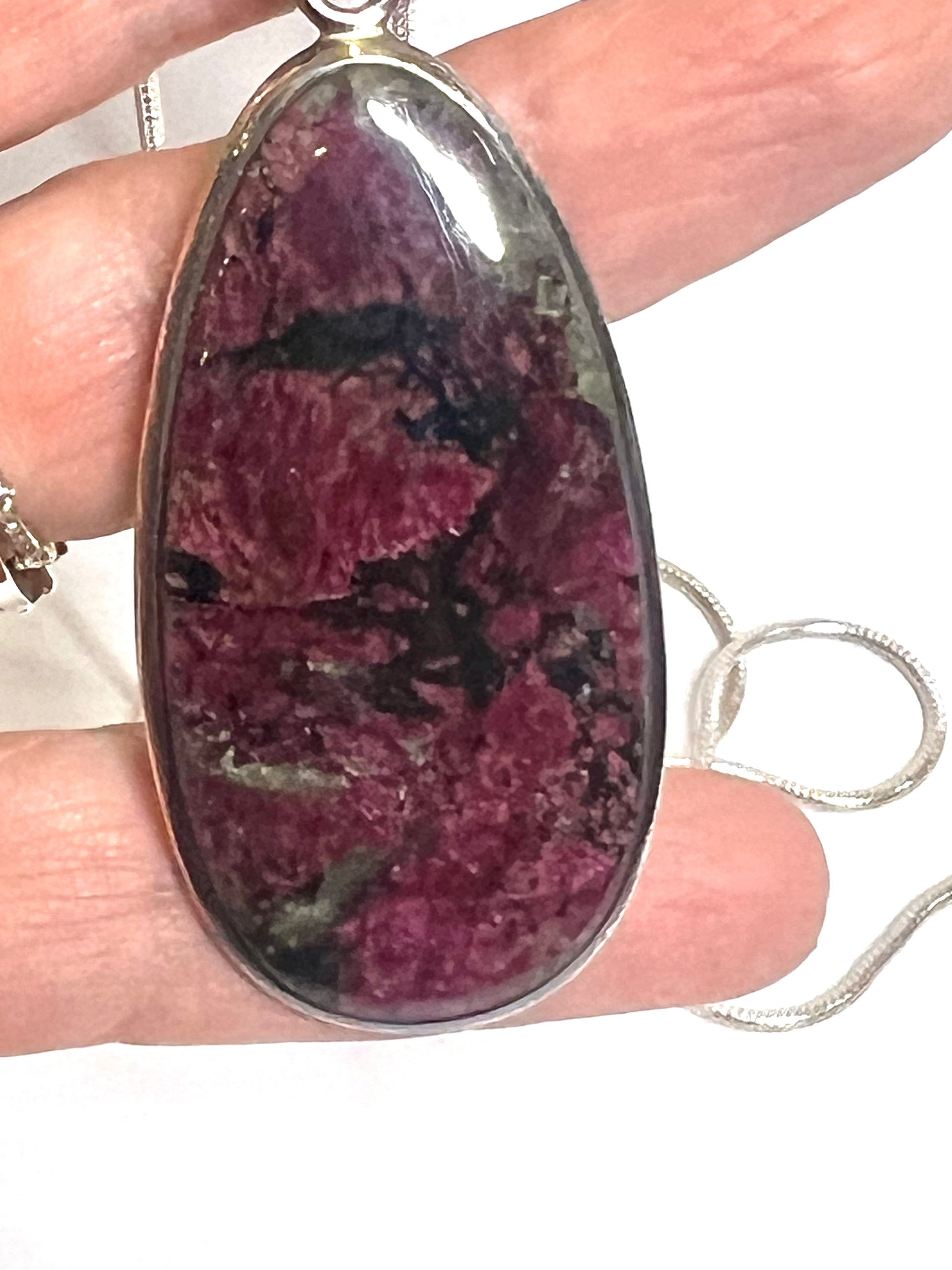 Elegant Eudialyte Oval Pendant – Sterling Silver Statement Piece 2" by 1" Love Healing Crystal