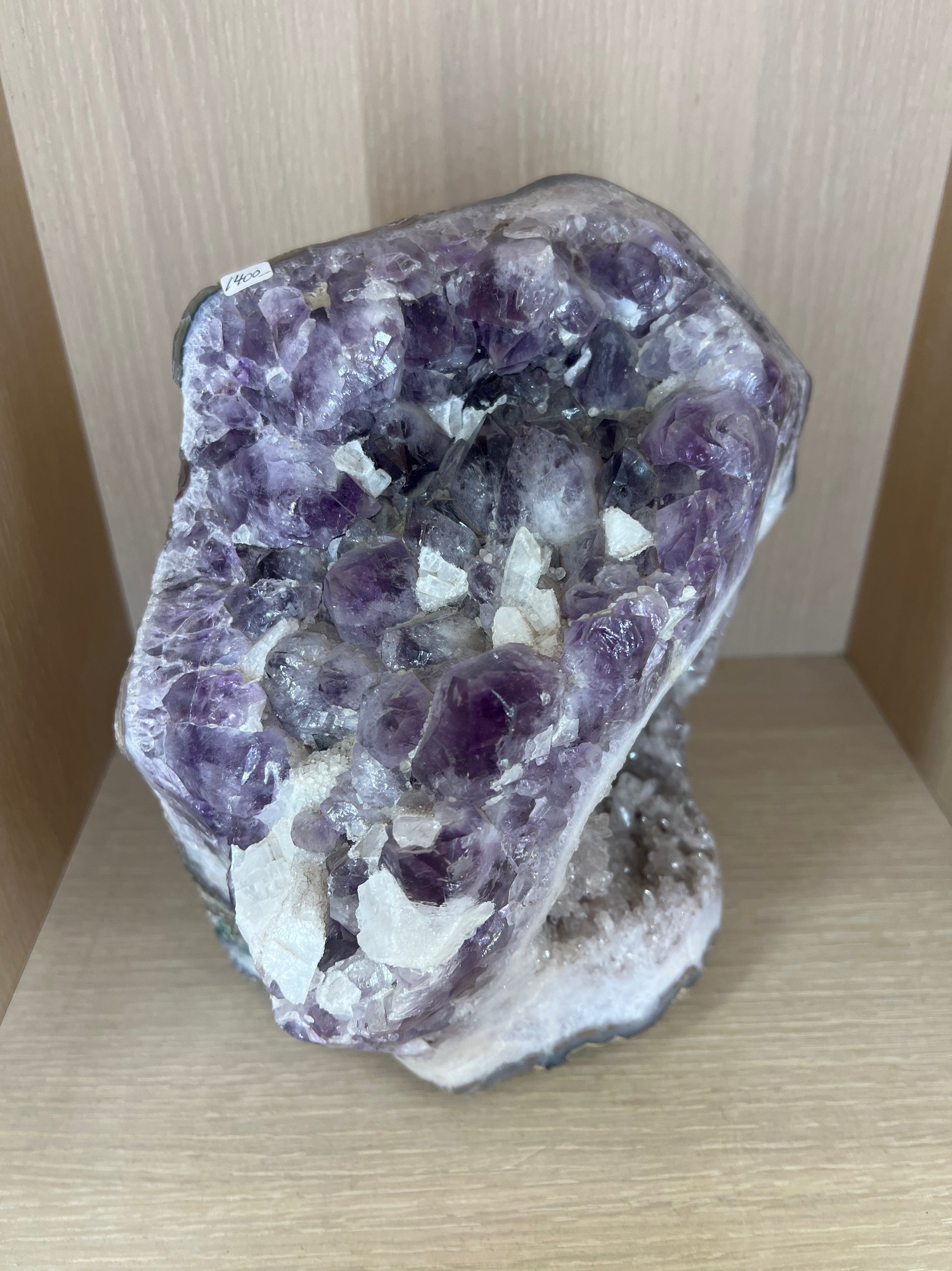 9" Tall 8" wide. Amethyst is not only treasured for its spiritual properties, but also for its physical healing properties and amethyst metaphysical properties. It is believed to help with anxiety, depression, clear the mind, wash away toxic thinking, encourage solid sleep patterns, and ease tension and headaches.